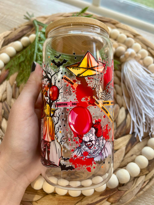 Creepy Clown Balloon and Georgie Horror Themed Glass Cup