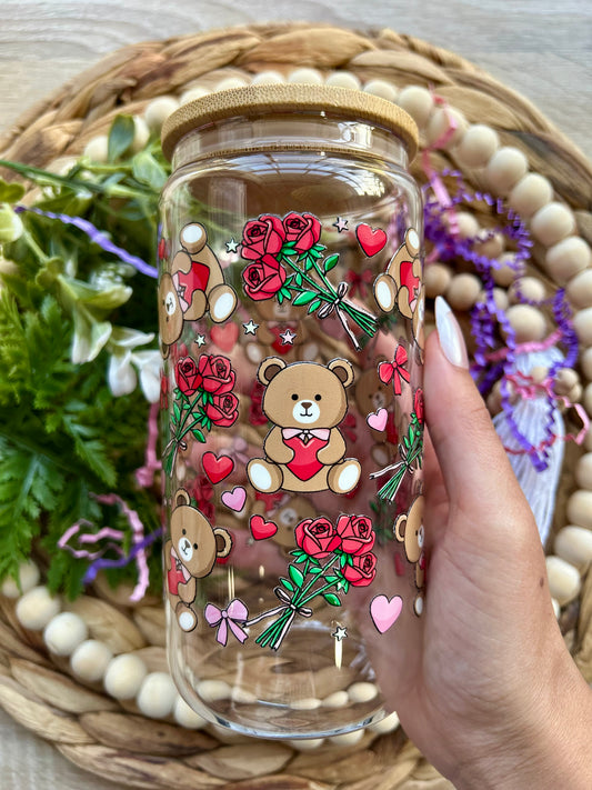 Love Bear Valentines Themed Glass Cup