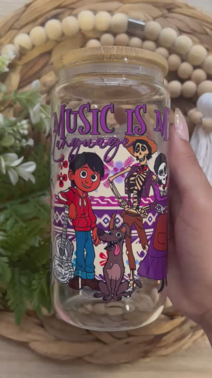 Celebrate love, family, and the music that keeps our memories alive with the Remember Me Glass Cup, inspired by Coco. This stunning design features beloved characters like Héctor, Ernesto De La Cruz, and more — all beautifully illustrated around the glass to honor the story of family, legacy, and following your dreams.