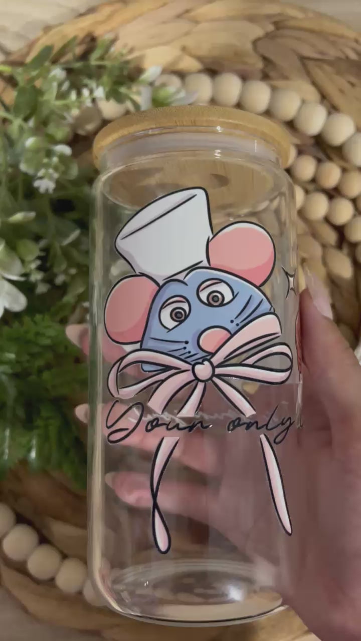 Bring a taste of culinary magic to your everyday drinks with our Magical Chef Glass Cup! Inspired by a little rodent with big dreams in the kitchen, this 16 oz glass features a whisking hero, a talented sous-chef, and the charming world of gourmet delights. Perfect for anyone who believes that “anyone can cook” and that a little creativity can turn even the simplest ingredients into something extraordinary.