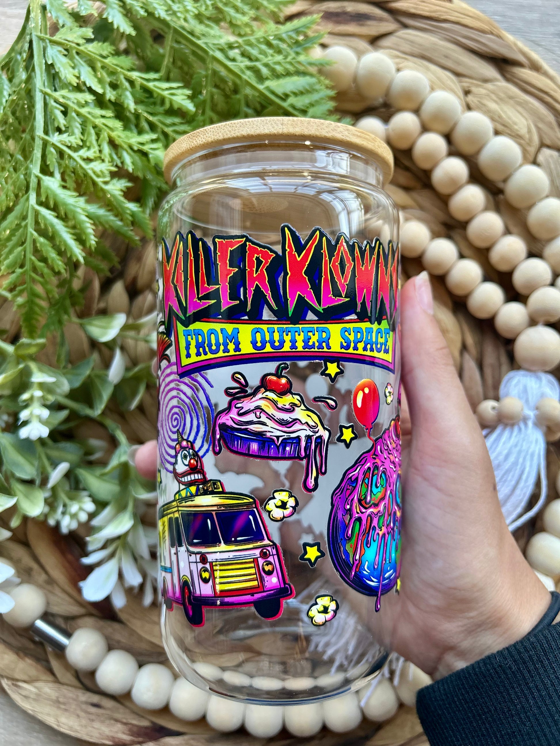 Whether you’re sipping iced coffee, potions, or something straight from the carnival, these cups are perfect for horror fans who love to mix glam with gore.
