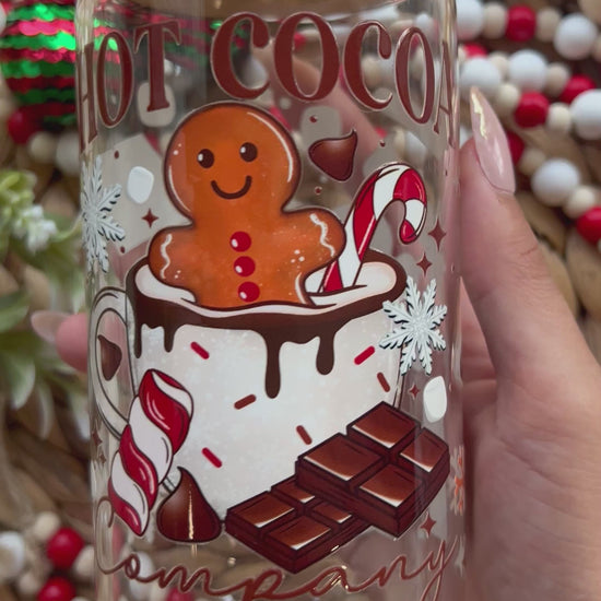 Cozy up this holiday season with our Hot Chocolate Company glass cup — a festive favorite from the Glass & Glamour Co. Christmas Collection. This charming 16 oz glass showcases a warm, holiday-inspired design wrapped all the way around, featuring nostalgic seasonal elements that bring the magic of winter straight to your cup.