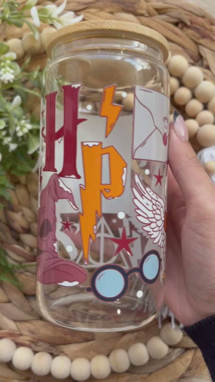 With its cozy, scrapbook-style aesthetic, this 16 oz glass cup is perfect for iced coffee, tea, or your favorite cold brew while reading, journaling, or rewatching your favorite fantasy films.