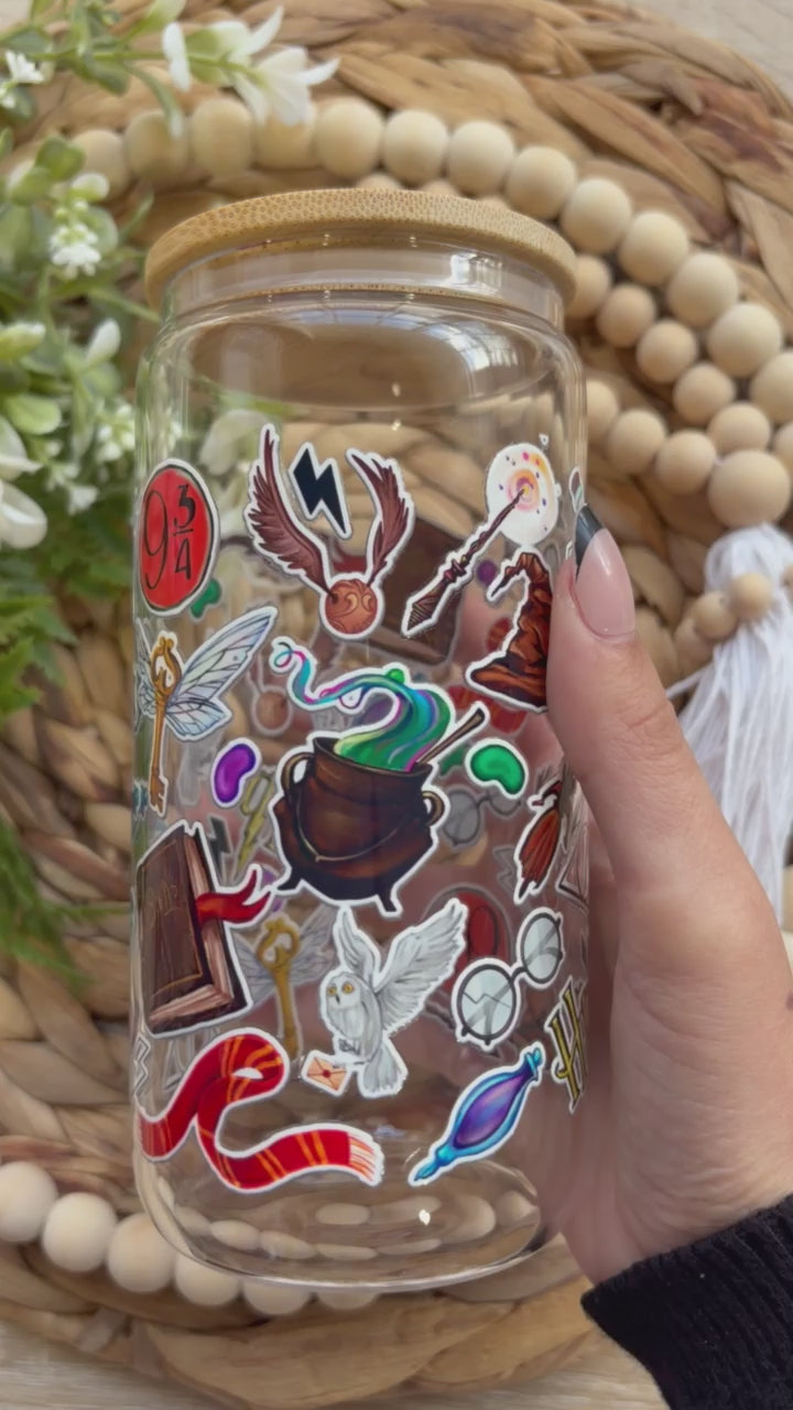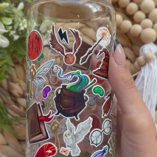 Bring a little magic to your everyday routine with our Wizard Sticker Collage Glass Cup. Inspired by a beloved fantasy world, this design features a fun mix of sticker-style illustrations that capture the charm of magical adventures, cozy spells, and nostalgic moments. The playful collage layout makes this cup feel youthful, whimsical, and full of personality.