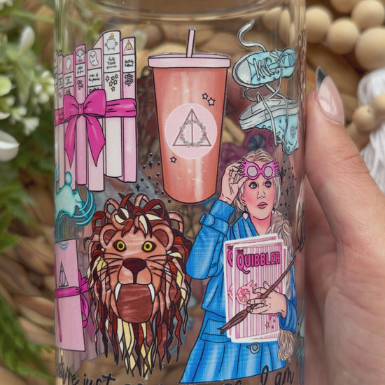 Embrace your love for the wonderfully whimsical with this Wizard-Inspired Glass Cup, designed for those who see the world a little differently. This 16 oz glass features enchanting imagery inspired by a free-spirited, kind-hearted witch known for her curiosity, creativity, and belief in the unseen. From magical creatures to quirky symbols and dreamy details, each element wrapped around the cup captures a sense of imagination, individuality, and gentle magic.